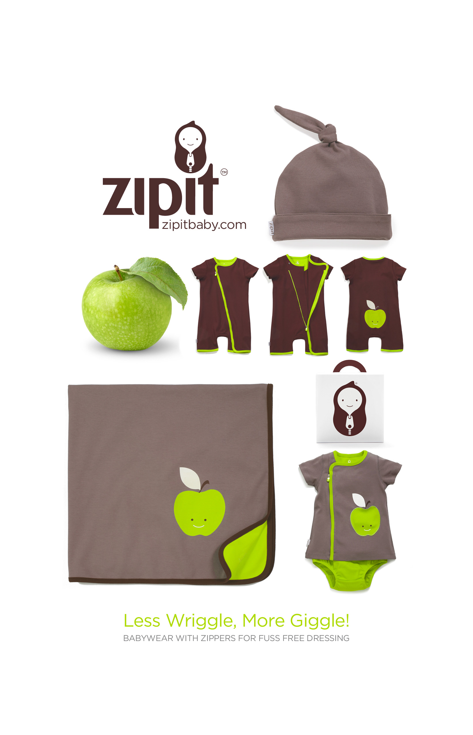 ZIPIT® Baby wear with zips - A happier, simpler way to dress little ones without wrestling clothes over wobbly heads or fussing with fiddly snaps. Designed, developed, & led factory production & launch of a new line of babywear with a patented design. This included all elements of brand design, art direction and photography, sales & marketing. https://zipitbaby.com